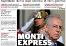 Le maggior parte delle prime pagine di oggi apre riportando il discorso di Mario Monti che ha accettato con riserva l’incarico di formare un nuovo governo: crescita, equità e riscatto dell’Italia sono le parole riportate dai quotidiani. Dopo di lui ha parlato il Presidente della Repubblica che ha richiamato l’attenzione delle forze politiche chiedendo “uno sforzo straordinario per recuperare la fiducia”. L’altra notizia di oggi è il video con cui Silvio Berlusconi saluta i suoi elettori dichiarandosi triste per gli insulti della piazza, rivendicando il suo gesto di generosità per l’Italia e avvertendo che non lascia ma “raddoppia”: i giornali a lui vicini avvertono che la sua avventura politica non è finita.