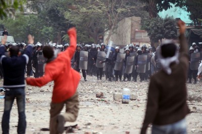 La battaglia a piazza Tahrir di oggi pomeriggio tra manifestanti e forze di sicurezza egiziane