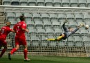 Tra Pakistan e India c’è una lunga rivalità che spesso si è espressa nello sport: nella tradizionale selezione delle migliori foto sportive della settimana, la vediamo all’opera nella lotta libera, uno degli sport più popolari dell’Asia. Poi c’è qualche foto un po’ inquietante: un portiere di hockey su ghiaccio che cammina per un corridoio (detta così non fa paura, ma guardate la foto), atleti del triathlon che emergono dall’acqua e sembra un film di Romero, quello degli zombie. E poi la foto di un allenatore che ricorda un po’ Charlie Brown.