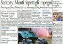 Sarkozy ci mette fretta, Berlusconi torna a parlare in pubblico, le pagine sportive si occupano di una gran vittoria e di un pugno