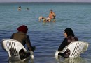 Israelis bathe in the hot springs on the shore of the Israeli Dead Sea near Kibbutz Ein Gedi on November 10, 2011. The Dead Sea is one of the sites candidate of other 28 sits in a international online campaign votes to select the new Seven Wonders of World Heritage Sites. AFP PHOTO / MENAHEM KAHANA (Photo credit should read MENAHEM KAHANA/AFP/Getty Images)