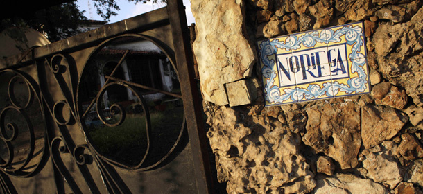 The entrance to a mansion, formerly owned by Panama’s former dictator Manuel Noriega and currently owned by the state, is seen in Panama City, Monday, April 11, 2011. According to the Ministry of Economy and Finance, there were no bidders at Monday’s auction on Noriega’s former properties. (AP Photo/Arnulfo Franco)