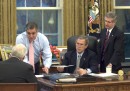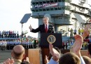 La fase iniziale del conflitto si concluse il 15 aprile 2003 con la caduta di Tikrit, la città natale di Saddam. In questa fase morirono 9.200 combattenti iracheni, 7.299 civili, 139 soldati americani e 33 britannici. Il 21 aprile venne istituita l’Autorità provvisoria della coalizione (CPA), di fatto un vero e proprio governo che si stabilì nella Green Zone fino a giugno 2004. Il primo maggio Bush visitò la portaerei Abraham Lincoln, che aveva combattuto in Iraq e si trovava a pochi chilometri da San Diego, in California, e tenne il famoso discorso in cui annunciava la vittoria sulle truppe irachene mentre alle spalle sventolava uno striscione con scritto Mission Accomplished, “Missione compiuta”. Un’immagine che lo perseguiterà negli anni a venire. Da quel momento gli attacchi terroristici contro le truppe della coalizione si intensificarono, e iniziarono anche scontri sanguinosi tra le diverse etnie e religioni del Paese, in particolare tra i sunniti – fino a quel momento la minoranza al potere – e gli sciiti, maggioritari nel paese ma oppressi dal governo.