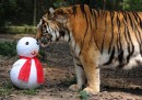 Ci sono buoni motivi per continuare a festeggiare: nuove nascite, compleanni e, manco a dirlo, ancora il Natale. Qualcuno nel proprio ambiente, come i gaviali nelle riserve naturali (sono coccodrilli!), gabbiani sui monumenti. Qualcun altro estremamente fuori posto: fenicotteri rosa nella neve di Zurigo, tigri siberiane che annusano circospette pupazzi di neve di carta sotto il sole di Sao Paulo, cuccioli di elefante su enormi bilance.