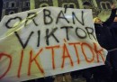 Decine di migliaia di persone sono scese in piazza ieri a Budapest, in Ungheria, per protestare contro le nuove ennesime modifiche alla Costituzione apportate dal governo guidato da Viktor Orban e dal partito conservatore Fidesz, che gode di una larga maggioranza parlamentare. I manifestanti sostengono che le riforme rimuovono molti contrappesi del sistema istituzionale ungherese introdotti dopo la fine del comunismo e minacciano quindi la tenuta della democrazia. Anche l’Unione Europea e gli Stati Uniti nelle scorse settimane avevano chiesto al governo ungherese di fare un passo indietro, senza ottenere risultati. L’approvazione delle riforme, tra l’altro, complica il raggiungimento di un accordo tra l’Ungheria, l’Unione Europea e il Fondo Monetario Internazionale, mentre le agenzie di rating continuano a penalizzare i titoli di Stato ungheresi: la faccenda politica potrebbe diventare presto una faccenda economica e coinvolgere tutta l’Europa.