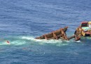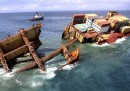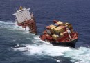 La parte posteriore della Rena sta scivolando sulla barriera corallina dov’è rimasta incagliata per tre mesi – a 23 chilometri dalla costa di Tauranga, in Nuova Zelanda – e sta affondando, rendendo ancora più complicati i tentativi di svuotare la nave cargo dal carburante e dai container a bordo ed evitare così quello che sarebbe uno dei peggiori disastri naturali della storia del Paese.