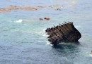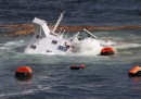 Le foto della poppa della nave sommersa dall'acqua, mentre la prua è ancora incagliata nel fondale