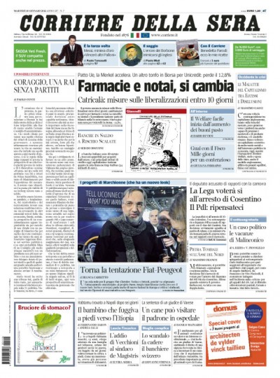 Le prime pagine di martedì 10 gennaio 2012