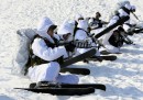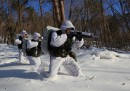 I corpi speciali dell’esercito sudcoreano hanno iniziato oggi il loro addestramento invernale, che comprende immersioni in acqua ghiacciata, ginnastica nella neve, escursioni nel bosco a una temperatura di 20 gradi sotto zero, esercitazioni di tiro.