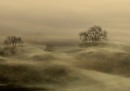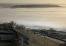 L’autunno e l’inverno in Regno Unito sono stati particolarmente miti, tranne una breve parentesi dalla vigilia di Natale a metà gennaio, quando ha nevicato e due persone sono morte per il maltempo. Il freddo è aumentato parecchio negli ultimi giorni, invece: il servizio meteorologico nazionale ha detto che nel weekend ci saranno nebbia e gelo e le temperature si faranno più rigide in tutto il paese, per poi risalire verso gli inizi della prossima settimana. Il fotografo di Getty Images Matt Cardy ha approfittato della densa nebbia che è scesa questa mattina sulla zona rurale attorno a Glastonbury, nel sud dell’Inghilterra, e ha scattato alcune belle foto.