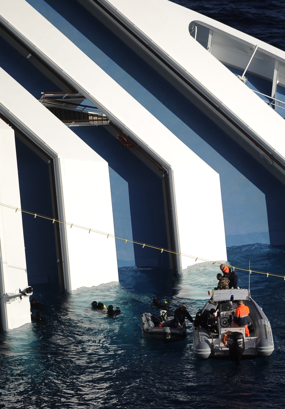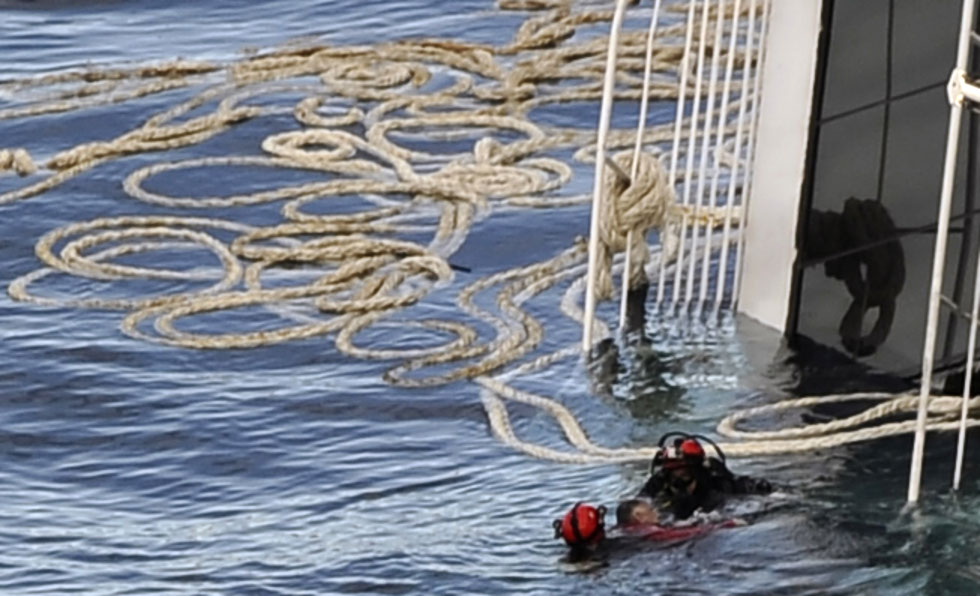 15.08 – I corpi si trovano nella parte di poppa sommersa della Costa Concordia.
