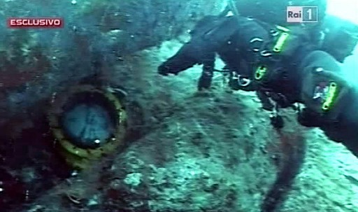 12.57 – Il sito di RaiNews24 ha pubblicato alcune immagini, tratte da un filmato trasmesso da Rai1, dove sono visibili alcuni detriti appartenenti probabilmente alla Costa Concordia e ritrovati nei fondali nei pressi dell’isola del Giglio. C’è anche un’oblò.