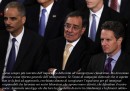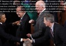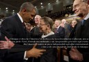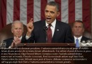 Il presidente degli Stati Uniti Barack Obama ha rivolto al Congresso ieri sera, stanotte in Italia, l’annuale discorso sullo Stato dell’Unione: l’ultimo del suo mandato e quindi, potenzialmente, l’ultimo della sua presidenza. Il discorso è stato incentrato principalmente su due temi, economia e politica estera, e Obama ha detto più volte che gli Stati Uniti si stanno riprendendo da un momento difficile e oggi possono costruire un futuro di solidità durevole. Obama non ha mai criticato esplicitamente i repubblicani, come per prassi non si fa in questa circostanza, ma molti passaggi del suo discorso hanno tirato in ballo più o meno esplicitamente le posizioni politiche dei suoi avversari, più volte invitati a comportamenti responsabili.
