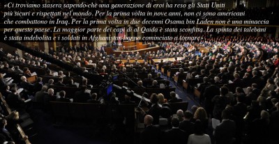 Il presidente degli Stati Uniti Barack Obama ha rivolto al Congresso ieri sera, stanotte in Italia, l’annuale discorso sullo Stato dell’Unione: l’ultimo del suo mandato e quindi, potenzialmente, l’ultimo della sua presidenza. Il discorso è stato incentrato principalmente su due temi, economia e politica estera, e Obama ha detto più volte che gli Stati Uniti si stanno riprendendo da un momento difficile e oggi possono costruire un futuro di solidità durevole. Obama non ha mai criticato esplicitamente i repubblicani, come per prassi non si fa in questa circostanza, ma molti passaggi del suo discorso hanno tirato in ballo più o meno esplicitamente le posizioni politiche dei suoi avversari, più volte invitati a comportamenti responsabili.