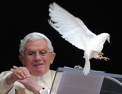 I fotografi sono andati a nozze oggi con le immagini delle due colombe liberate al termine dell’Angelus in piazza San Pietro, che invece di allontanarsi hanno svolazzato intorno a Benedetto XVI e sono entrate all’interno della stanza.