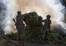 Lunedì l’esercito messicano ha trovato una piantagione di marijuana a Los Algodones, vicino alla capitale dello stato di Sinaloa, Culiacán, e l’ha estirpata e bruciata. Durante le operazioni il generale Pedro Gurrola, comandante dell’esercito a Sinaloa, ha spiegato che le piante sono tutte inaridite e che quest’anno i soldati hanno scoperto una minor quantità di piantagioni rispetto agli anni precedenti. I coltivatori di marijuana, ha raccontato, stanno cercando di salvare le piante: «Cercano di adattarsi. Se trovano un ruscello o una pozza ci infilano pompe e tubi e coltivano più piante possibili».