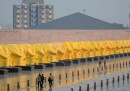 Nelle foto più belle di oggi ci sono sculture cinetiche, enormi striscioni gialli contro Putin e molti fiocchi di neve