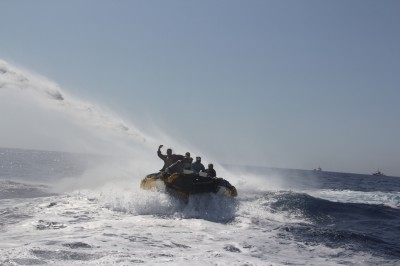 Nonostante i pirati somali siano di norma interessati a ricchi bottini o a riscatti per grandi navi, anche una nave di piccole dimensioni come la Steve Irwin in quella zona può essere un facile obiettivo. Gli attivisti in questi casi cercano di proteggere la nave, corazzarla e renderla meno vulnerabile possibile. Prima di essere donata a Sea Shepherd, la Steve Irwin è stata un’imbarcazione di pattugliamento dei mari del nord, e per questo alla vista è molto simile a una nave militare. «Spesso, specialmente con la nuova colorazione mimetica, le navi della coalizione anti pirateria che pattugliano quella zona ci contattano scambiandoci per una nave militare non identificata». Durante le notti passate in queste acque, Giacomo racconta di come i turni di guardia siano raddoppiati e come vengano utilizzati i visori notturni sui ponti posteriori della nave.