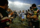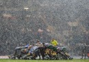 Nelle foto sportive più belle di questa settimana ci sono alcuni accoppiamenti insoliti, tipo un colpo di arti marziali durante una partita di calcio del Barcellona e una bufera di neve durante una partita di rugby. I cazzotti durante gli incontri di hockey sono invece ben più consueti, come probabilmente le lotte fra tori negli Emirati Arabi Uniti.