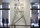 Dopo il completamento le opere resteranno in esposizione fino al 26 febbraio. Giulia Ticozzi ha fotografato Ozmo mentre dipingeva, per il Post.
