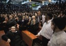 Oggi a Bnei Brak si è celebrato il matrimonio – in stile tradizionale – del pronipote del rabbino chassid della città, un evento a cui hanno partecipato moltissime persone. Il fotografo dell’Associated Press Oded Balilty ha scattato alcune belle foto dei preparativi del matrimonio, degli invitati e della mitzvah tantz, una danza che si tiene dopo i festeggiamenti e prima della notte di nozze in cui alcuni uomini – tra cui il rabbino e lo sposo – ballano attorno alla sposa, che resta in piedi da sola in un angolo della sala.