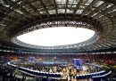 Le foto delle 100 mila persone che si sono riunite allo stadio di Mosca per sostenere la candidatura alle presidenziali di Vladimir Putin