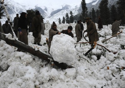 Nella regione indiana del Kashmir nevica dall’inizio dell’anno e continua a fare molto freddo. È una situazione normale nella zona, in particolare nei distretti di Ganderbal e Bandipora che ogni anno restano isolati dal resto della regione per almeno cinque mesi a causa della neve e della pioggia. Questa notte ci sono state valanghe nella valle e oggi molte persone si aggirano tra la neve in cerca delle loro cose. Le valanghe hanno travolto anche due basi militari al confine con il Pakistan, uccidendo 16 soldati indiani.