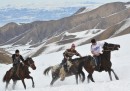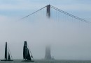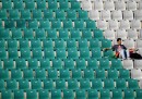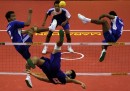 Nelle migliori foto sportive di questa settimana ci sono due sport di cui non avevamo mai sentito parlare: uno si gioca tra le montagne e le nevi del Kirghizistan, tirando una pelle di pecora. L’altro si chiama sepak takraw, è popolarissimo nel sud est asiatico ed è una specie di pallavolo giocata con i piedi. Guardate qualche scena di gioco su Youtube, se vi capita: è spettacolare. E le gare di tuffi della scorsa settimana a Londra, uno spettatore solitario e annoiato di una partita di una nazionale italiana e il Golden Gate Bridge.