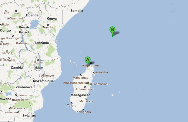 16:41 – La nave era in viaggio da Nosy Be (Madagascar) a Mahé (l’isola più grande dell’arcipelago delle Seychelles), dove sarebbe dovuta arrivare domani (da A a B nella mappa).