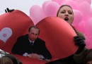 Tra una settimana si terranno le elezioni presidenziali in Russia. Il 23 febbraio si è svolta una grande manifestazione a sostegno della candidatura del premier uscente Vladimir Putin. Trenta mila persone, secondo la polizia, hanno marciato per due chilometri lungo il fiume fino allo stadio Luzhniki dove si trovavano altri cento mila sostenitori. Tra gli ammiratori del primo ministro russo, in prima fila, erano presenti soprattutto donne, che indossavano pellicce o magliette con la scritta “Io voto Putin” e cuoricini dipinti con i colori della bandiera nazionale.