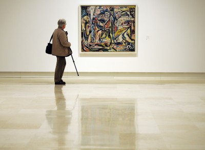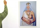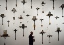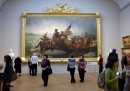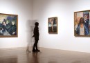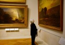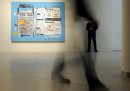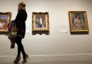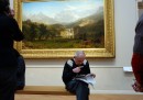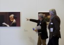Uno dei tratti di queste delicatezze è che persino le opere d’arte antiche vengono protette da musei e proprietari perché le loro immagini non circolino troppo, e così nelle mostre – antiche o moderne o contemporanee – viene spesso concesso ai fotografi di raffigurare e diffondere solo immagini generali degli ambienti o contesti che non ritraggano esattamente le immagini originali, e le agenzie fotografiche quindi distribuiscono queste bizzarre inquadrature che diventano una categoria e una scelta artistica a loro volta: quadri visti da lontano, sale con quadri di sbieco, quadri in allestimento, persone davanti a quadri e opere d’arte, soprattutto. Le guardano, ci passano davanti, guardano da un’altra parte. A furia di vederne, si rimane più incuriositi dai soggetti e dal loro rapporto col contesto che non dall’opera stessa.