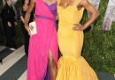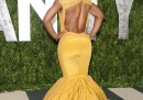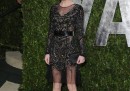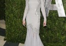 La festa organizzata da Vanity Fair in corrispondenza della premiazione degli Oscar è occasione per una sfilata di attori e celebrità che in qualsiasi altro momento dell’anno sarebbe complicato vedere tutti insieme nello stesso posto. Anche se in realtà tutti insieme non sono mai davvero: il New York Times definisce la festa “una maratona”, non solo perché tra abiti e trucco e parrucchieri bisogna prepararsi per tempo, ma anche perché gli invitati sono così tanti che sono convocati a scaglioni, per fasce orarie. Alcuni già durante la premiazione, quelli che non concorrono agli Oscar, altri dopo: vincitori e nominati di norma arrivano dopo le 23, e sono quelli visibilmente più contenti e sciolti degli altri.