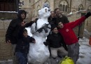 Le foto di Gerusalemme, dove non nevicava da quattro anni, e di Hebron, Betlemme e Ramallah: tutto bianco e tutti molto contenti