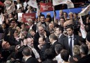 Il prossimo 22 aprile in Francia si terrà il primo turno delle elezioni presidenziali e i due principali candidati, il socialista François Hollande e il presidente uscente Nicolas Sarkozy, sono in questi giorni impegnati nella campagna elettorale per convincere gli indecisi e guadagnare consensi. Secondo i sondaggi più recenti sulle intenzioni di voto, Hollande è in testa con il 29 per cento circa delle preferenze, seguito da Sarkozy al 25,5 per cento. Tra gli altri candidati raccoglie buoni consensi Marine Le Pen del Front National con il 18,8 per cento. Il centrista François Bayrou, del Mouvement démocrate, ha invece l’8 per cento delle preferenze. Secondo un sondaggio di LH2-Yahoo, al momento Hollande potrebbe vincere al secondo turno, che si terrà il 6 maggio, con il 58 per cento. Ci sono comunque ancora sette settimane prima delle elezioni e, secondo gli analisti, i dati potrebbero cambiare sensibilmente man mano che ci si avvicinerà al primo turno. Saranno settimane frenetiche di comizi, strette di mano, bagni di folla, inni nazionali, sorrisi alle macchine fotografiche.