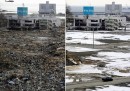 A distanza di un anno, in molte aree è stata completata la complessa e lunga fase di rimozione delle macerie e dei detriti. Sono stati anche avviati piani di ricostruzione delle infrastrutture distrutte, passo fondamentale per iniziare anche a ricostruire le case e consentire agli oltre trecentomila sfollati di tornare nelle loro città. Il recupero e la ricostruzione delle aree colpite avrà un costo enorme, che secondo gli analisti supererà i 92 miliardi di dollari. Come molti altri fotografi in queste settimane, i fotoreporter dell’agenzia di stampa giapponese Kyodo sono tornati nelle zone della prefettura di Miyagi per verificare lo stato dei lavori, e mostrare le differenze tra i giorni subito dopo il disastro e oggi. Alcune aree, rese irriconoscibili da macerie e detriti, sono tornate alla normalità con strade ripulite ed edifici ricostruiti. In altre zone, invece, i danni dello tsunami sono ancora evidenti, con interi isolati da ricostruire e alcune imbarcazioni spostate sulla terraferma ancora da recuperare.