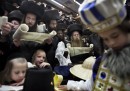Il fotografo di Agence France Presse Menahem Kahana ha fotografato le celebrazioni del Purim nella città di Bnei Brak, che si trova a est di Tel Aviv, in Israele, ed è abitata quasi esclusivamente da haredim, gli ebrei ultra-ortodossi. Fino agli anni Settanta la città era abitata da persone appartenenti a diverse correnti dell’ebraismo ma negli ultimi quarant’anni è stata governata esclusivamente da sindaci haredim, che hanno favorito la crescita della popolazione ultra-ortodossa e provocato l’allontanamento degli altri cittadini. Lo scorso mese avevamo pubblicato il servizio del fotografo dell’Associated Press Oded Balilty dedicato a un matrimonio ortodosso celebrato a Bnei Brak.
