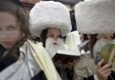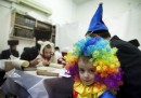 Le foto dei festeggiamenti degli ebrei ortodossi a Bnei Brek, in Israele, tra bambini, barbe finte e scritti sacri