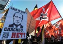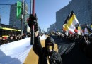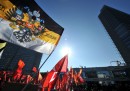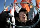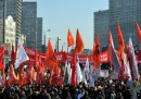 Oggi a Mosca, in Russia, si stanno svolgendo nuove proteste contro la rielezione di domenica scorsa del nuovo presidente Vladimir Putin, al suo terzo mandato. Sono le prime proteste dopo le centinaia di arresti a Mosca e San Pietroburgo di lunedì scorso, il giorno dopo le elezioni presidenziali vinte da Putin con circa il 65 per cento dei voti, secondo i dati ufficiali contestati dalle opposizioni e anche da alcuni osservatori internazionali. A Mosca, dove oggi c’è il sole ma fa anche molto freddo, circa 2500 agenti sono in strada per garantire l’ordine pubblico.
