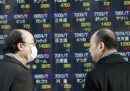 Dall’altra parte del mondo, invece, uno spettacolo della stessa famiglia si mostra ogni giorno e ci arriva attraverso le agenzie fotografiche, per il sollievo di redazioni internazionali sempre disperatamente in cerca di illustrazioni per notizie così poco illustrabili come quelle finanziarie. In Cina, Giappone, Corea, grandi tabelloni luminosi mostrano le quotazioni ai passanti in strade e piazze: ma a giudicare dalle immagini, loro restano passanti e non si fermano più in crocchi a guardare quei numeroni, segno dei tempi. Persone che si muovono sullo sfondi di numeri che si muovono, probabilmente non nella stessa direzione.