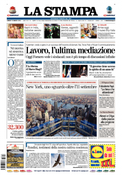 Le prime pagine di lunedì 19 marzo 2012