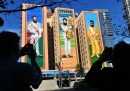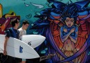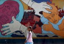 I murales li viviamo come uno strumento di comunicazione o una manifestazione artistica di altre epoche, che nelle nostre società sono passati di moda o sono stati rimpiazzati da più moderne creazioni di “writers”, anche se poi spesso sempre della stessa cosa si tratta. Ma indipendentemente dalle ambizioni artistiche dei creatori, o dalle loro rivendicazioni sociali, in molti luoghi del mondo i murales diventano poi parti stabili dei paesaggi urbani, più o meno belle, più o meno amate. E fondali di vite quotidiane (speculari a quelli digitali delle borse), di anni che passano, di facce ed espressioni, che con quei messaggi si mettono in relazioni casuali e teatrali.