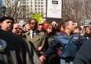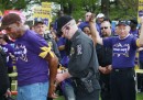 La storia delle militanze hollywoodiane è peraltro ormai lunga, ed ebbe una grande vivacità negli anni Settanta e sulla guerra in Vietnam. Ma come mostrano queste foto, sono state diverse le occasioni in cui personaggi famosi dello spettacolo sono stati arrestati in pubblico per contestazioni non autorizzate: non c’è stata solo l’era di Jane Fonda (e di Vanessa Redgrave o Wim Wenders, fermati anche loro), ma anche quella di Stevie Wonder, delle decine di arresti di Martin Sheen, e di quelli più recenti di Daryl Hannah e Danny Glover. Se non vi ricordate per cosa protestassero, ecco, questa è una cosa su cui forse riflettere.