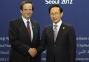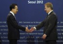 Oggi a Seul, in Corea del Sud, è iniziato il Vertice sulla sicurezza nucleare. Al vertice partecipano rappresentanti di più di cinquanta paesi – c’è anche il presidente del Consiglio italiano, Mario Monti – e di numerose organizzazioni internazionali. L’incontro segue il primo vertice che si era tenuto a Washington nel 2010 e sarà seguito da un terzo incontro in Olanda, nel 2014. L’obiettivo è mettere al sicuro il materiale nucleare presente sul pianeta e impedire che cada nelle mani di terroristi. L’incontro, che si concluderà il 27 marzo, è il più importante evento a livello internazionale mai ospitato dalla Corea del Sud, che nel 2010 aveva organizzato il vertice del G20.