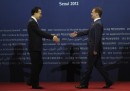 Per garantire la sicurezza dell’evento, la polizia sudcoreana ha creato una squadra di sicurezza speciale composta da circa 40 mila poliziotti con il compito di sventare eventuali attacchi terroristici o aggressioni provenienti dalla Corea del Nord. La squadra speciale venne presentata un mese fa in una cerimonia particolarmente pittoresca a cui parteciparono 1.800 spettatori, tra cui parlamentari sudcoreani, alti funzionari della polizia e ambasciatori stranieri. I lavori del vertice cominciano oggi, ma a giudicare dalle foto qui sotto si può dire con ragionevole certezza che il presidente della Corea del Sud, Lee Myung Bak, sia già stanco morto.