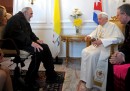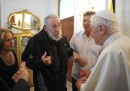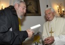Joseph Ratzinger, 84 anni, papa della Chiesa cattolica, ha incontrato ieri all’Avana l’ex leader rivoluzionario e presidente cubano Fidel Castro, 85 anni. I due hanno parlato per mezz’ora e, secondo un portavoce del Vaticano, Castro ha chiesto al Papa delle responsabilità del suo lavoro e delle novità nella liturgia, facendo battute sul loro essere entrambi ottuagenari. Fidel Castro ha studiato dai gesuiti, da giovane. Prima dell’incontro con Castro, il papa aveva celebrato una messa a Plaza de la Revolución, a l’Avana, nel cuore della Cuba rivoluzionaria: col presidente Raul Castro in prima fila, Ratzinger ha detto che «Cuba e il mondo hanno bisogno di cambiare, ma questo accadrà solo se ciascuno si mette a cercare la verità e sceglie la via dell’amore, verso riconciliazione e fraternità». Il papa ha ringraziato il governo cubano per i passi avanti fatti in questi anni sul fronte della libertà religiosa. Le organizzazioni umanitarie hanno denunciato abusi e arresti illegittimi anche durante la visita di Ratzinger, 150 soltanto mercoledì, secondo Amnesty International. Durante la messa un uomo ha urlato “abbasso il comunismo!”: è stato rapidamente portato via dalle autorità e, dice il Wall Street Journal, non è stato più visto in pubblico. Il Vaticano ha detto che il Papa ha chiesto informazioni sull’uomo al governo cubano e che non ha incontrato gruppi di dissidenti.