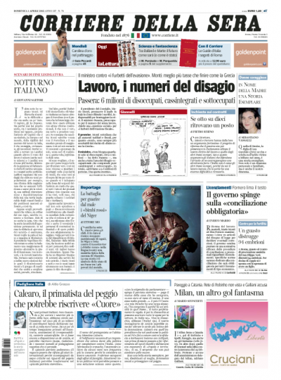 Oggi sui quotidiani la discussione resta sugli aumenti delle bollette, e su nuovi commenti di Monti dall’Asia su tasse e crisi. In prima sul Corriere un reportage di Ettore Mo, che oggi compie 80 anni, dal Niger.