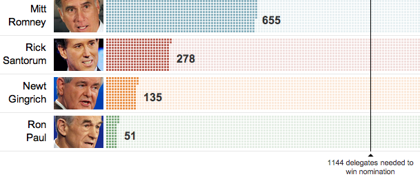 Se la matematica li tiene in corsa, però, politicamente la corsa sembra definitivamente finita e la nomina di Romney a candidato repubblicano sembra pressoché scontata, a questo punto. Non a caso, ieri, per la prima volta dall’inizio delle primarie, il presidente statunitense Barack Obama ha accusato direttamente Mitt Romney, criticandolo per il suo sostegno a una contestata manovra finanziaria annunciata dal deputato del Wisconsin e capo della Commissione Bilancio della Camera, Paul D. Ryan. Romney ha detto invece che Obama non ha a cuore i bisogni dei cittadini americani e lo ha accusato per “gli errori” nella gestione del mercato immobiliare, del debito del governo e dei prezzi sempre più alti della benzina negli Stati Uniti.