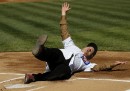 L’autore del primo lanciò può essere però un qualsiasi “dignitario”: un ex atleta, un attore, uno sponsor. E ieri, per la partita di inizio campionato tra Washington Nationals e Chicago Cubs a Chicago, il primo lancio è toccato a Bill Murray, che è di Evanston, un sobborgo di Chicago. Che non si è accontentato di lanciare (non un gran lancio): prima ha voluto correre lungo tutte le basi scivolando poi a terra verso casa base. Il campionato di baseball è iniziato due giorni fa con la prima partita, tra Miami e St. Louis, campioni l’anno scorso.