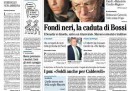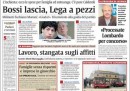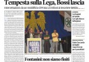 Una rassegna stampa "storica" sulle dimissioni di Bossi: per il Giornale e il Secolo ha "salvato la Lega", il Manifesto titola "canotta strappata"