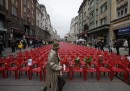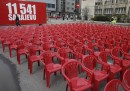 Per ricordare il ventesimo anniversario dell’inizio dell’assedio da parte delle milizie serbe, nel centro di Sarajevo è stato disposto un fiume di 11.541 sedie rosse, corrispondenti al numero presunto di persone uccise durante l’assedio.